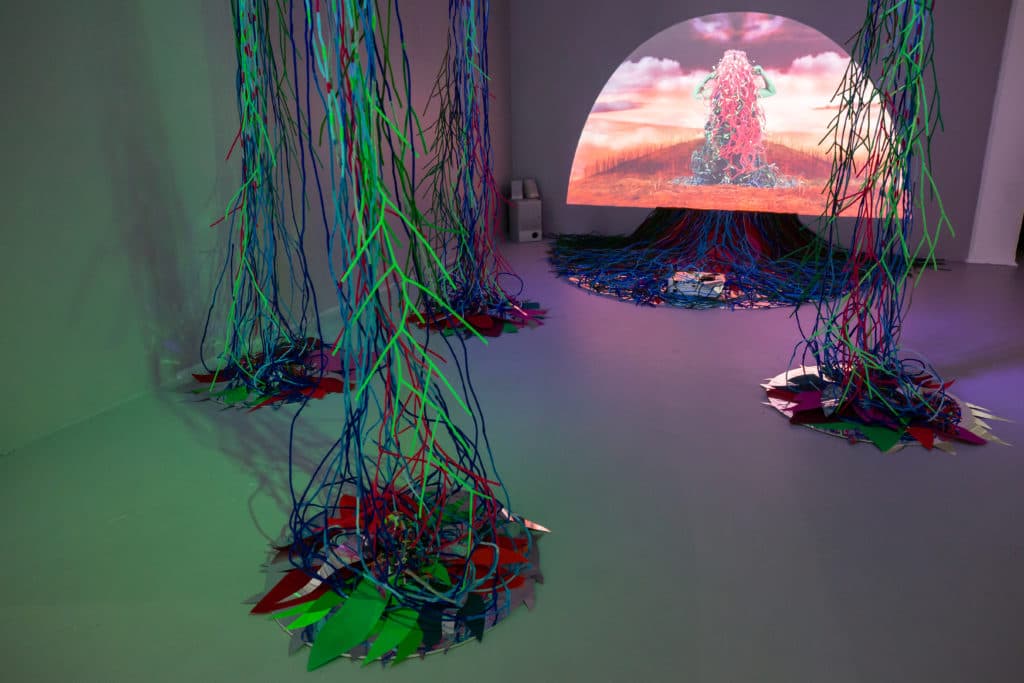 I write this review from the same place I viewed Boston Center for the Arts’ current exhibition, “FeministFuturist”—my living room. I am fortunate to be working from home, but I was not fortunate enough to see the exhibition in person before strict social distancing orders were set in place across the country. My understanding of the exhibition cannot be separated from the sense of collective grief at this moment. The pressure to maintain some form of business-as-usual as we move much of our lives online tempts us to ignore the monumental feeling of loss that comes with no longer being physically present—both in a space and with one another. This perspective colors my experience of “FeministFuturist” as well.
