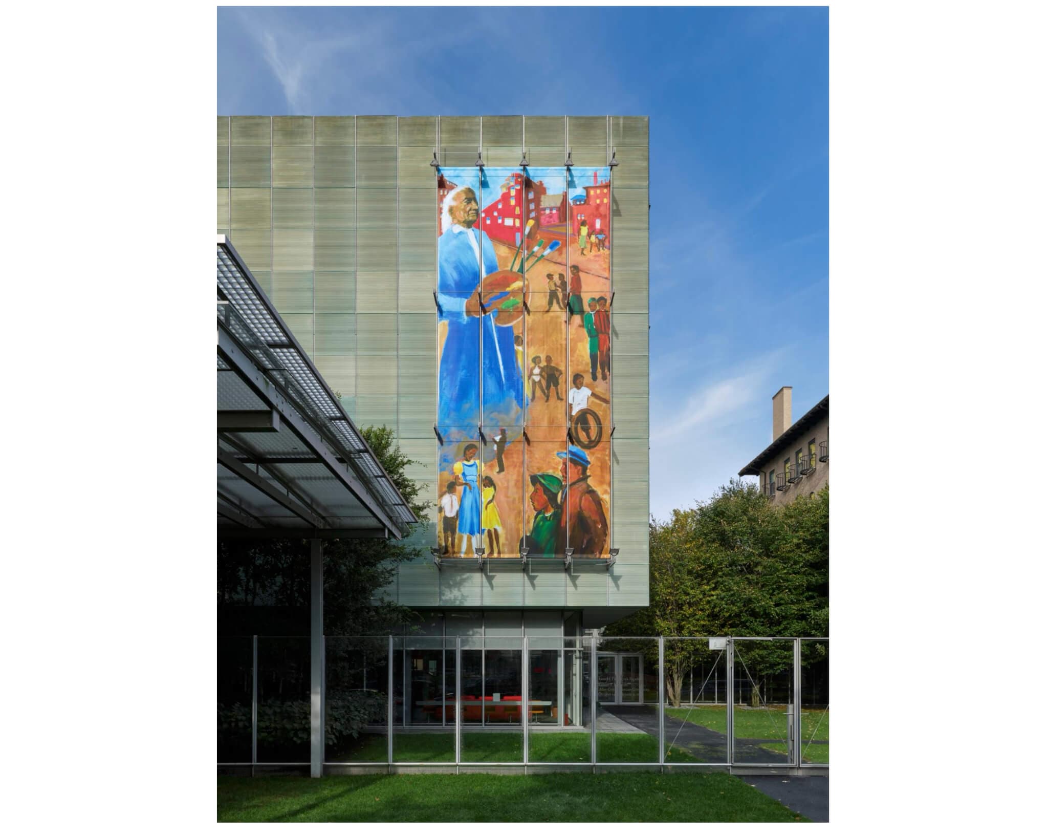 Installation view, “Robert T. Freeman: Allan Crite – American Griot, 2025,” Anne H. Fitzpatrick Façade, October 14, 2025–February 10, 2026. Isabella Stewart Gardner Museum, Boston.