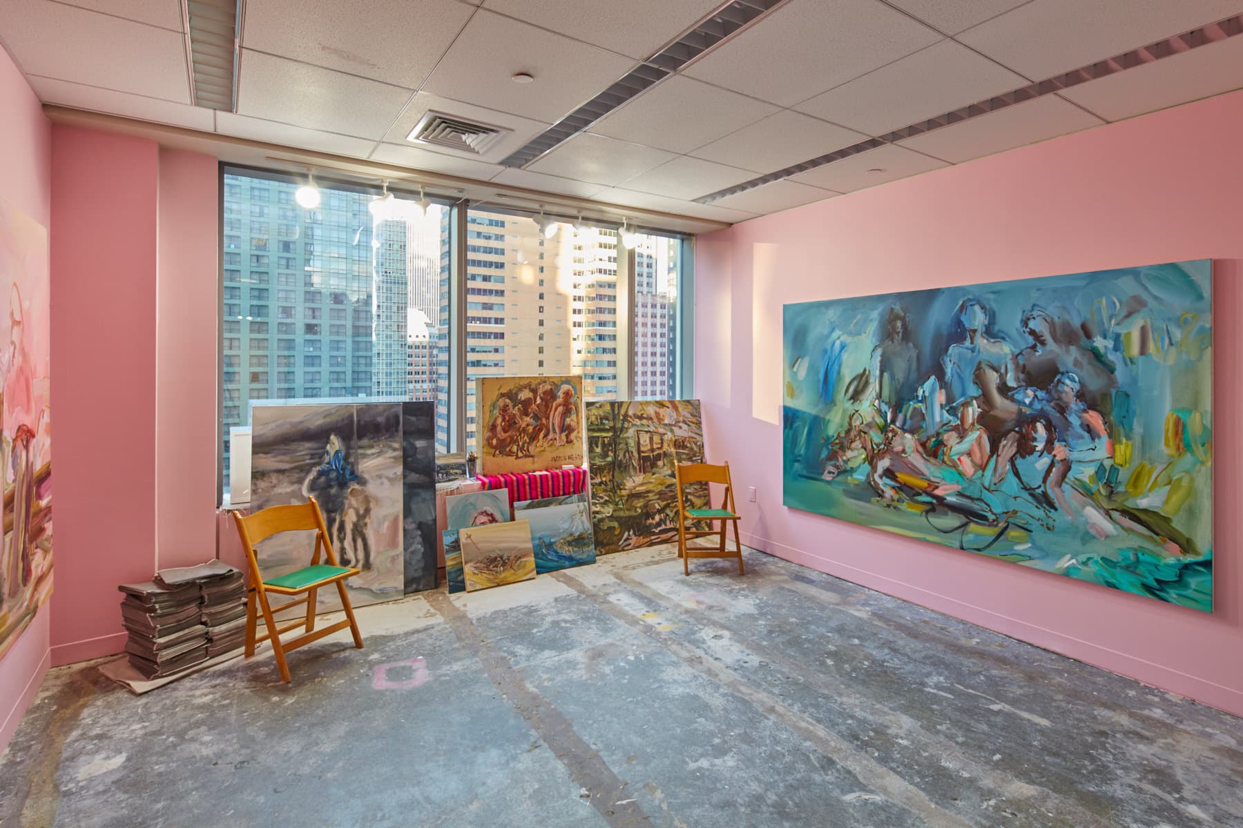 I make large scale oil paintings because the scale I am used to being around is twice my size. Yes the people all around me have influenced everything I do but the spaces I’ve been privy to are in everything I make. After grad school I was sent to work in Leipzig, Germany and space came to the forefront again. I hope people get lost in the dusky gendered colors in my paintings and are transported to a space that could be.