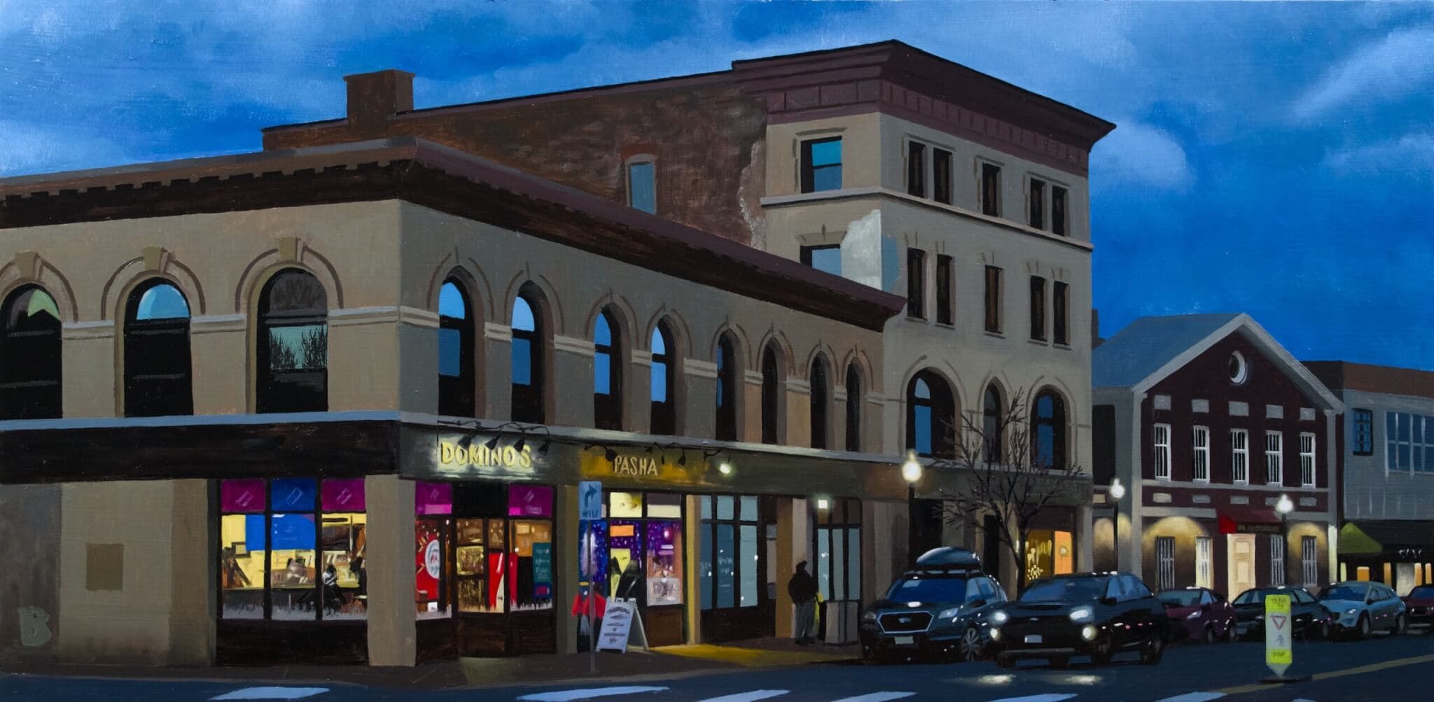 Paul Beckingham, Mass Ave and Water Street, 2024. Oil on aluminum. Photo courtesy of the artist and 13FOREST Gallery.